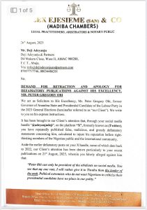 Obi’s team dismissed these claims as baseless, demanding a public retraction and a formal apology from Adeyanju. The letter warned that failure to comply could result in a lawsuit seeking damages and other legal remedies.