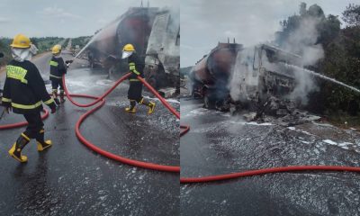Ibadan On Fire: Petrol Tanker Crash Sparks Chaos – Firefighters Battle Raging FlamesAn unidentified motor apprentice has been hospitalized following a collision involving a petroleum tanker...